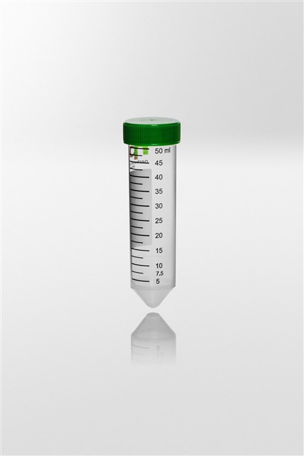 Centrifuge tube PP with screw cap PE, 50ml, Ø30x115 mm, conical bottom, tube transp., cap, sterile, 250 pcs/pack